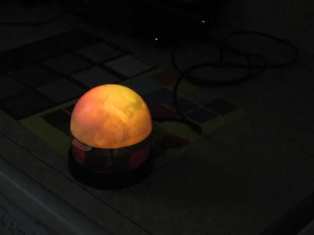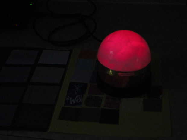 Se pulso rojo (para advertir viene exploración blanco) luego blanco, luego permanecer blanco durante dos segundos y luego escanear. Usted necesita tener su muestra blanco debajo de él.
