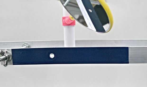 Cubrió el área donde la cámara se monta en el brazo de pivote con cinta de atar la tela libro. Funciona, pero la cinta de goma fina podría funcionar mejor si usted puede conseguirlo. Es una buena idea para cubrir esta área, no sólo es la cámara más firmemente debido a la fricción creciente, también protege la base de la preciosa cámara. Usé un bisturí para cortar el agujero en la cinta.