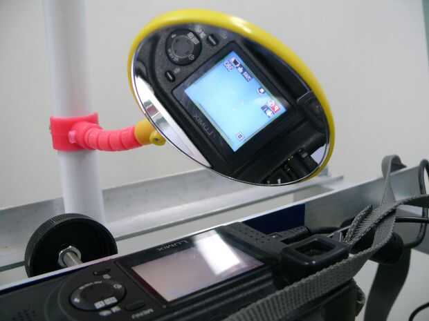 El espejo le permite ver la parte posterior de la cámara mientras el usuario esté sentado; Esto permite fácil comprobar que la copia va OK. También se muestra si la cámara se ha dejado en inadvertidamente, muy importante si está ejecutando desde las baterías.