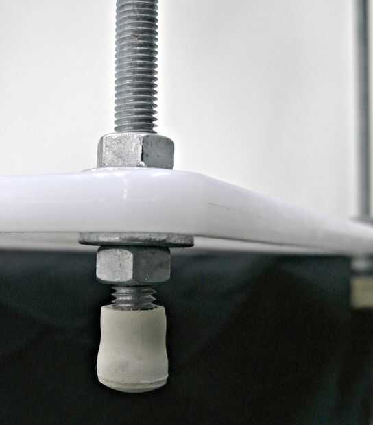Las barras se llevan a cabo en la placa base con dos tuercas y dos arandelas.