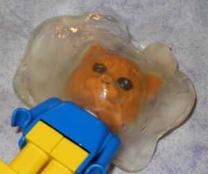 He intentado muchas veces y puedo decir que la temperatura de oyumaru en esta fase es segura de manos y de Legos (la minifigura de la foto es Charlie el gato de mi amado tema Fabuland).