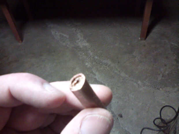 Para el orificio más pequeño, medí el ancho de algunos alambre grueso que tenía y perforado para que coincida con este diámetro.