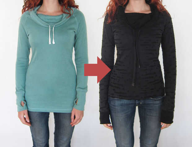 Esto es particularmente fácil con tejidos de punto y prendas de vestir stretch, es perdonador y no necesita 100% de exactitud para el éxito. Estoy usando un corte y coser suéter de punto como un ejemplo, pero se puede copiar cualquier prenda de vestir.