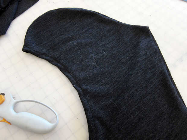 Ahora para la parte fácil, coser! Tenemos una máquina en el trabajo que hizo el trabajo rápido de mi suéter de coser juntos. Este paso obviamente variará dependiendo de la prenda, así que voy a topline justo lo que hice aquí.