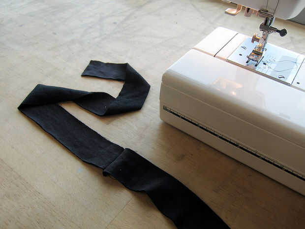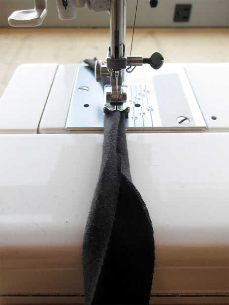 La parte más desperdiciador de tiempo de coser el Jersey juntos hacía el cordón para ir a través de la campana, así que decidí salir en un paso separado. Primero hizo algún enlace de desechos, luego pasan por el canal de la campana con un alfiler. Finalmente he añadido piezas de cuero a ambos extremos para evitar que el cordón salga de la campana.