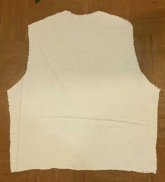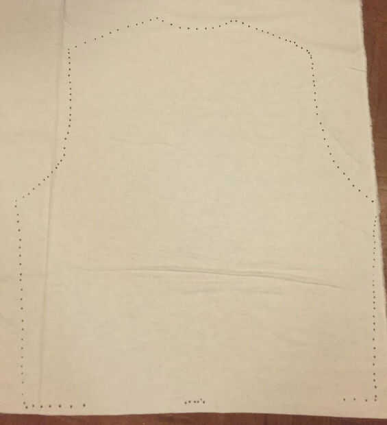 De la misma manera que trazó los paneles frontales, coloque el chaleco en la parte posterior del material y trazar un contorno del panel posterior. Otra vez deje un extra ½" por todos lados para tener en cuenta para las costuras y los dobladillos.