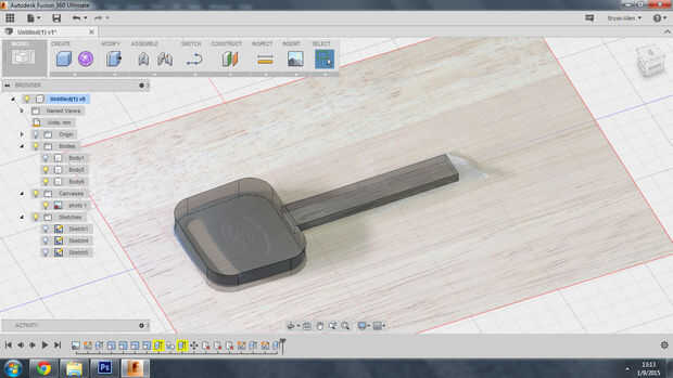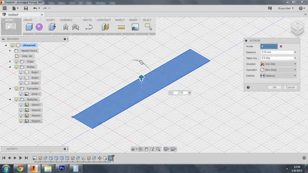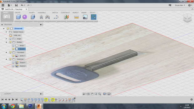 Ahora que la imagen se escala podemos empezar a construir el espacio en blanco de la llave. Utilice las pinzas para medir la longitud y la anchura de la llave. Hacer un bosquejo nuevo entonces un rectángulo del tamaño básico de la clave. Medir el punto más grueso de las teclas y para sacar el boceto a ese volumen. Si desea también puede Agregar un mango en este momento.