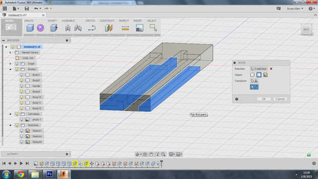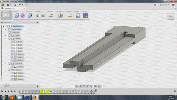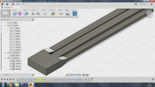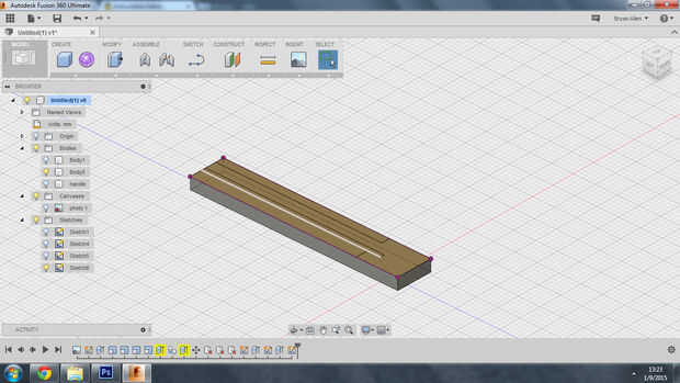 A continuación añadir en las ranuras en el lado de la tecla. Utilice el calibrador para medir las distancias en el eje de la llave y a lo ancho de los huecos. Registre en un nuevo boceto 2D.