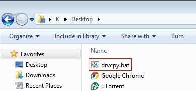 Guarde el archivo Bloc de notas como drvcpy.bat en escritorio