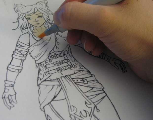 Casi siempre empiezo a colorear mis áreas de la piel primero. Generalmente es un buen principio para comenzar con la piel a menos que tengas un personaje de piel oscura usa ropa de color muy claro. En última instancia, usted querrá las áreas más claras de color primero antes de hacer los colores más oscuros porque se mezclan y a sangrar un poco y los colores más oscuros se consigue tirados en el color más claro está trabajando con y terminan en lugares que no con la intención de que vaya. EEW.