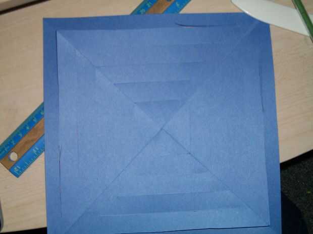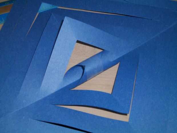 corte a lo largo de las líneas diagonales para que se vea como la primera foto. Desdoble con cuidado porque debe pegarse. Luego, los cortes más profundos y asegúrelas con cinta adhesiva como se muestra en el cuadro 3.