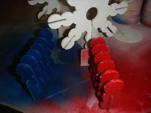 Para evitar tener el cartón más pequeño pedazos vuelen alrededor de cuando se aplica el spraypaint usan cualquier cartulina extra para crear un "X-Frame" para fijar las piezas más pequeñas.