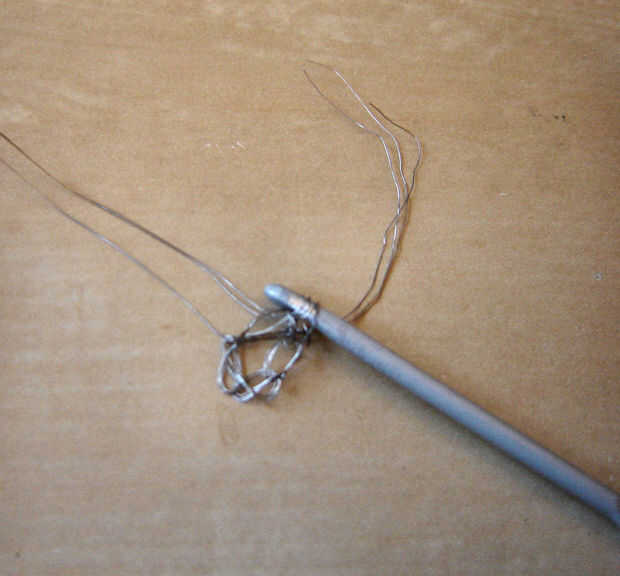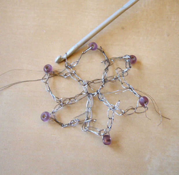 me siento muy orgullosa de decir que mi hija de nueve años surgió esta idea.Hace aproximadamente una semana, estaba tratando de llegar a un arte de copo de nieve ornamento para reutilizar algunas cuentas de cristal que habían pertenecido a mi abuela.