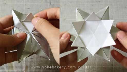 Vuelta. Traer cada punta de la media tan lejos como sea posible y hacer un doblez. Al final del paso, se deben tomar 12 aletas – 6 aletas grandes, 6 pequeñas aletas.