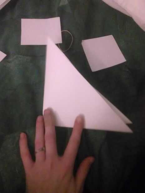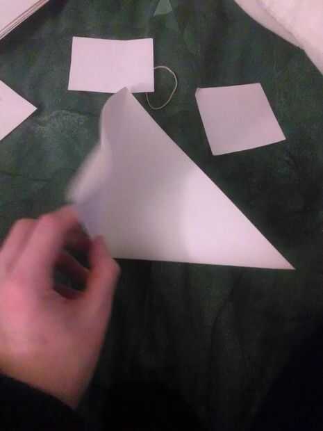 Comenzar con una pieza cuadrada de papel. Esto dobla en un triángulo doblando por la mitad una vez. A continuación, doblar este triángulo por la mitad para formar un triángulo más pequeño.