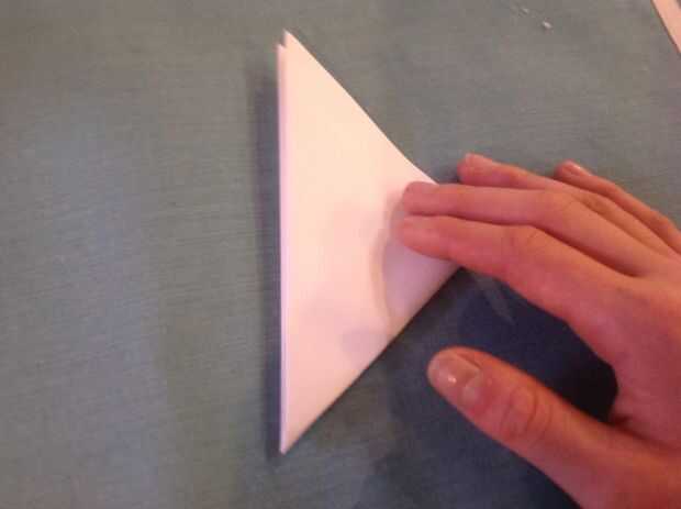 1. Doblar el triángulo por la mitad, ahora debería ser cuatro capas de espesor