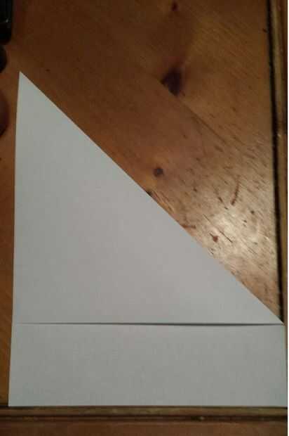Tomar una de las esquinas del papel y satisfacer al otro lado haciendo un ángulo de 90 grados. Esto debería hacer un pliegue perfecto.