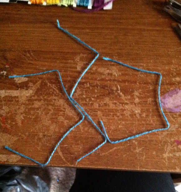 Ahora, usted está listo para los copos de nieve del hilo de rosca juntos! Corte tres (o sin embargo muchos puede que necesite) longitudes de cadena. (Mi cadena fue envuelto firmemente, así que tuve que les aplane un poco antes de que pudiera utilizarlos.)