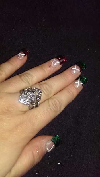 Bien chicos por lo que básicamente vas a querer lugar una x grande en sus uñas esto formará la gran parte del copo de nieve, así que tenlo en cuenta cuando la coloque. Decidí poner algunos de mina en centro sólo porque creo se ve mejor pero podría hacerlas todo uniforme