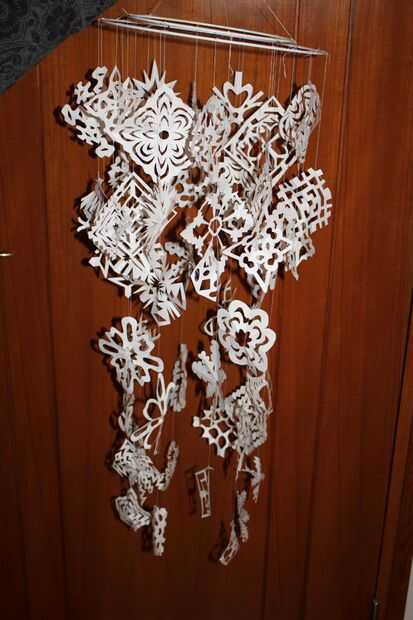 un juguete decorativo basada en el movimiento de deslizamiento de palo. El copo de nieve de madera se une por un resorte a una manga de madera que en una barra de metal. Deslice el copo de nieve en la parte superior de la varilla, y con un toque de