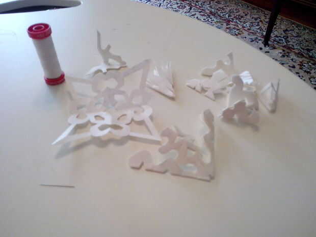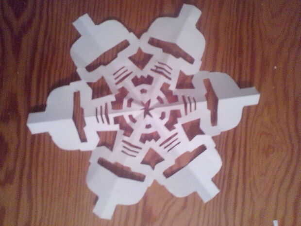 Para hacer un copo de nieve para hacer un cuadrado de un pedazo de papel blanco. El tamaño de los copos de nieve no importa siempre y cuando no son demasiado grandes. Mina eran entre 4cm (1-2") y 10cm (2-3"). doblar el quare en un triángulo. Dobla en un triángulo dos veces más y tenga en cuenta que es el centro del papel. Cortar formas en el papel asegurándose de que al menos algunos de ambos bordes plegados están todavía intactas para unir el copo de nieve. Desdoblar el papel, aplanar su escama y admirar su astucia.