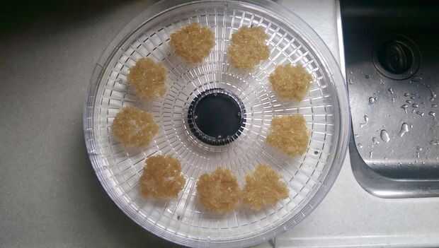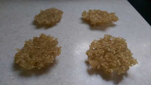 No dude en experimentar con formas y tamaños pero ten en cuenta que el más grande o más gruesa la forma, el más largo y más desigual el secado va ser. Aquí hay un par de primeros planos del pre y post secado arroz crocante.
