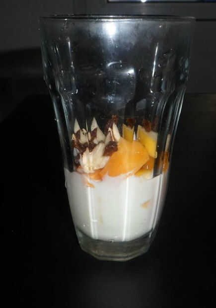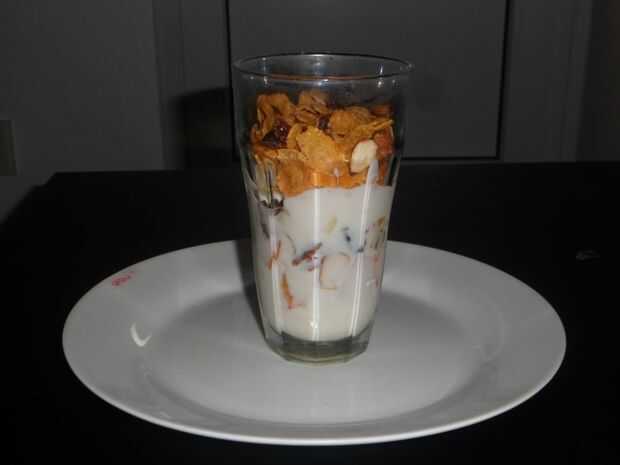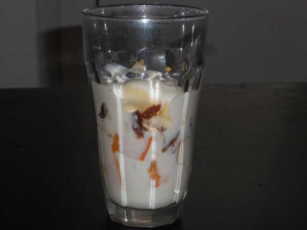 -Tomar un vaso de servir y añadir sweetend cuajada alrededor de 2 cucharadas en cada vaso.