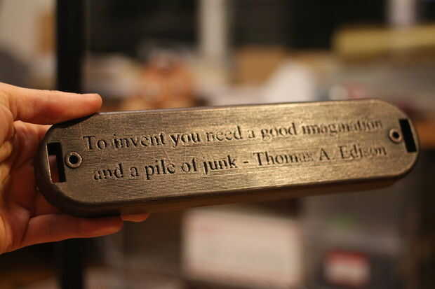 Usted ahora necesita a 3D imprimir un fondo para su lámpara. Es hueco por debajo, para ocultar el arduino y las baterías. Yo he conectado el archivo CAD (edison.stl). Hay dos ranuras en los lados para los "Brazos" sostener el tubo de vidrio. He utilizado una llave vieja que cortamos por la mitad con una sierra eléctrica, sin embargo cualquier otro tipo de armas hará el truco. Los otros dos agujeros pequeños en los lados para permitir su para fijar con tornillos a la pared o mesa.