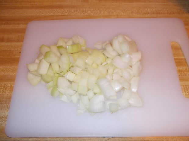 No tienes que cortarlas en trozos muy pequeños, ya que se filtra la mezcla más tarde, y se descartarán las piezas. 1/2 pulgadas piezas deben ser más que suficiente.