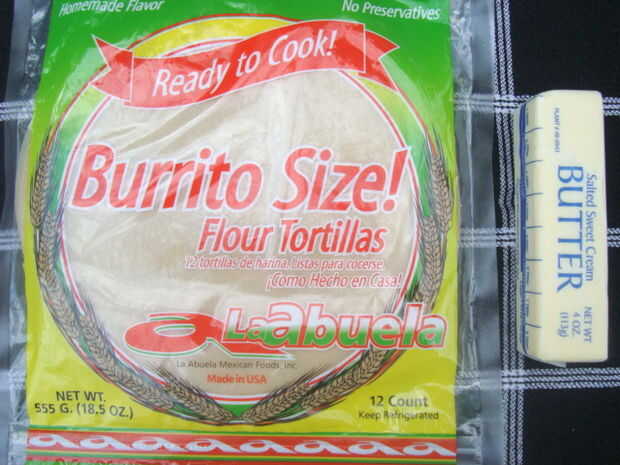 5 tortillas de harina crudas encontradas la sección de quesos de la tienda de comestibles.
