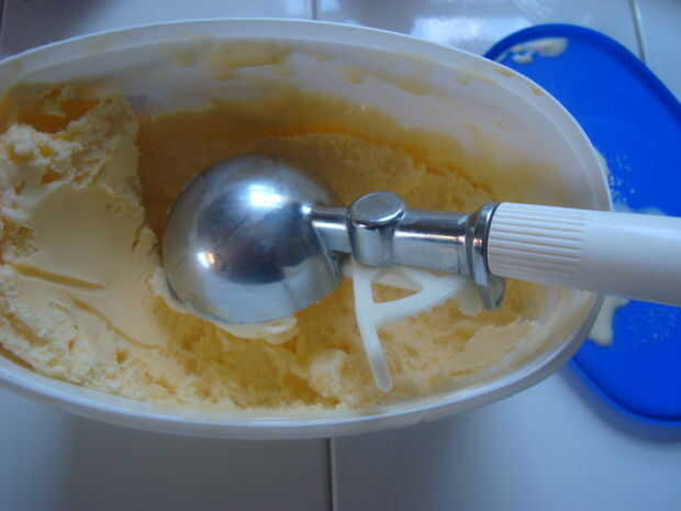 Sacar cuatro bolas de helado y el lugar en una bolsa de plástico grande o un plato con la tapa durante al menos 1 hora, o hasta congelado sólido otra vez.