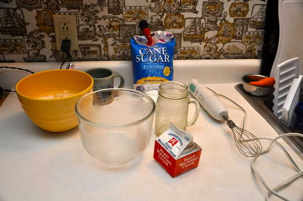 * Este se puede hacer a mano si no tienes una batidora eléctrica. Se necesita dos personas - una para sujetar la jarra y la otra para batir la crema. Para batir la crema de uso de la mano un bate regular y giros entre las manos que estaban tratando de encender un fuego. Hecho de esta manera tarda aproximadamente 5 a 8 minutos de batir constante para espesar la crema.