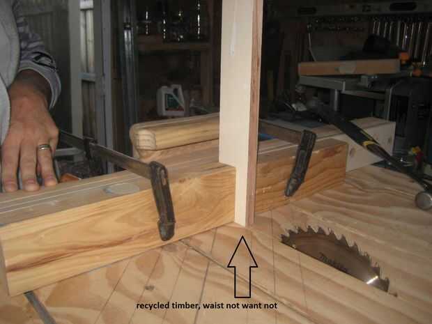 Colocar una junta plana y ponen las tablas G, siendo la madera en los bordes más largos, coloque las tablas de F también madera dura entre su G en los bordes más cortos. Mantener
