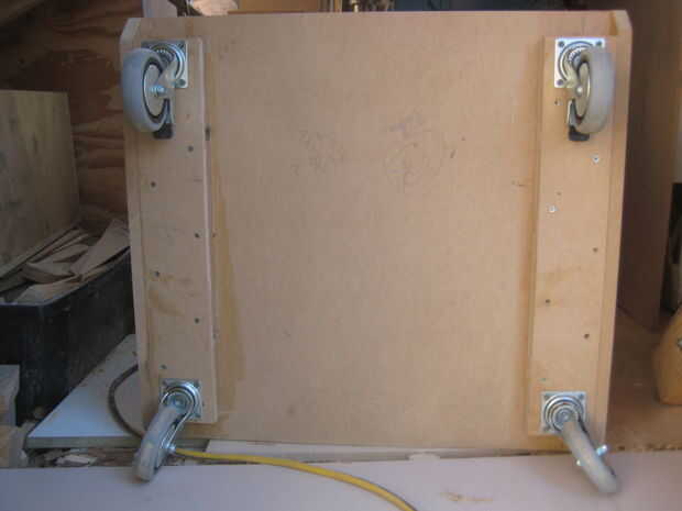 Invierta el trabajo y coloque las ruedas en los extremos de las abrazaderas.