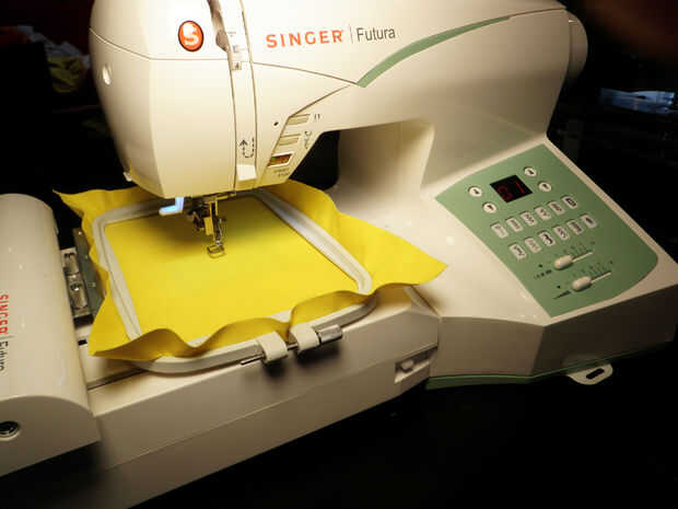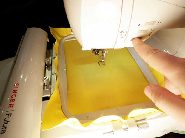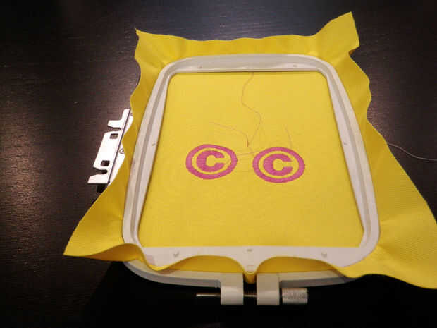 Cuando, en su archivo de computadora, arrastre y suelte la imagen de derechos de autor a la izquierda que despeja la primera imagen. Guarde el archivo y luego enviarlo a la máquina otra vez. Golpeó una vez más Inicio y bordar un segundo símbolo de copyright.