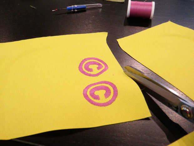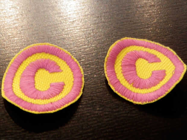 Cuidadosamente cortado ambos símbolos de derechos de autor con un par de tijeras que deja un pequeño borde amarillo.