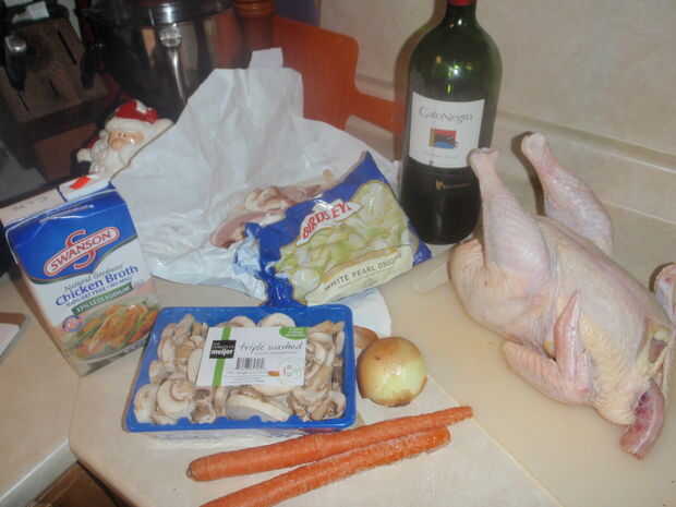 Vino - vino tinto es tradicional, y se ve bien así. Me han dicho que Pinot Noir es el vino "derecho", pero estoy usando Merlot porque la botella estaba a sólo ocho dólares. Es una botella doble en esa foto. No la usamos todos. Una buena regla es usar vino te gusta beber, pero generalmente odio todo el vino y disfrutar en la cocina, así que la regla es de tonta. Mi punto es que cualquier vino tinto va a hacer, aunque su salida de una caja. Sólo asegúrese de que no es una especie de "sandía con sabor a" o algunos tal absurdo. Usted podría, por supuesto, hacer su propia. Probablemente necesitarás una botella, pero usted puede conseguir lejos con una mitad.