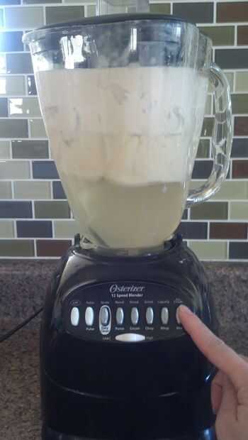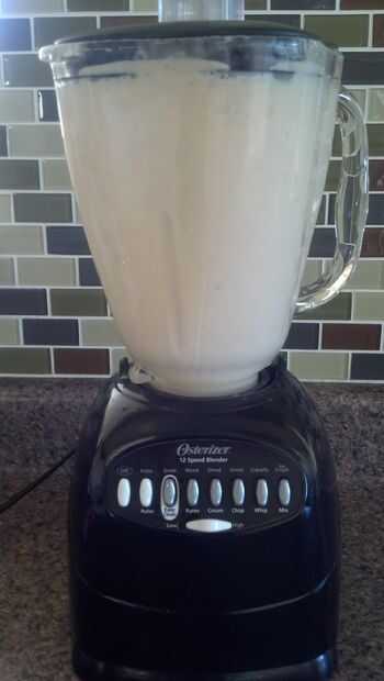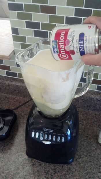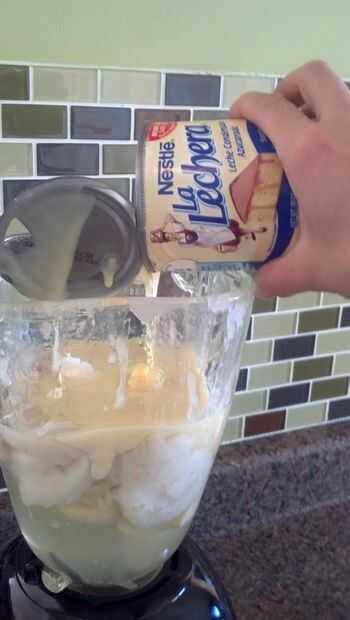 Mezcla todos tus ingredientes en una licuadora. Puede que necesite usar una cuchara para obtener la crema de coco fuera del recipiente. Al hacer esta bebida Virgen (sin ron) algunas personas agrega 6 onzas de leche en lugar de Ron para hacer la bebida menos espesa, una vez más esto es opcional. Si utiliza Ron la cantidad recomendada es de 6 onzas de ron blanco. La mayoría Puerto Ricans use Ron Bacardi. Asegúrese de que encender la licuadora alto y mezcla por al menos 5 minutos.