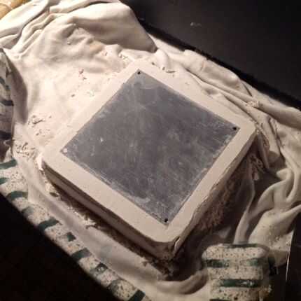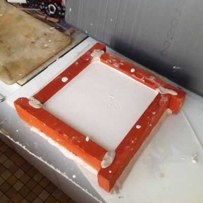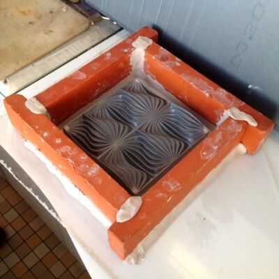 Tener una alta impresión 3D detallada de la baldosa de Corallo, comenzó a producir el molde de yeso. Fue muy fácil hacerlo, excepto por el hecho, y que resulta crucial para mezclar el yeso con el agua de una manera que no crea grumos hay que hacerlo rápidamente porque el yeso se seca rápido.