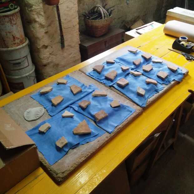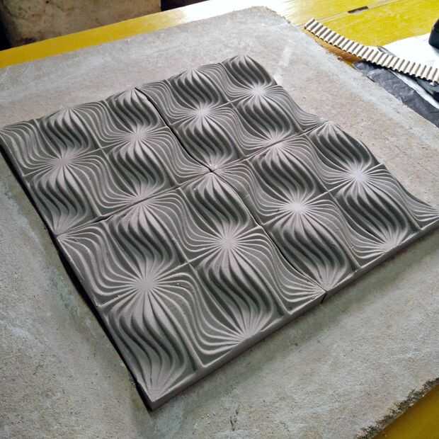 Antes de proceder con la etapa de cocción, deben secar azulejos, pasando del gris al color casi blanco. Este proceso puede tardar hasta 2 semanas si secado natural durante el invierno. En una baldosa con este tipo de forma, caracterizada por diverso grueso material, hay una gran probabilidad que se encrespan las puntas durante el procedimiento. Para evitar eso, pequeños trozos de piedra fueron utilizados como pesas para evitar ángulos de elevación. Es muy importante que los azulejos se secan bien antes de la cocción porque de lo contrario puede estallar.