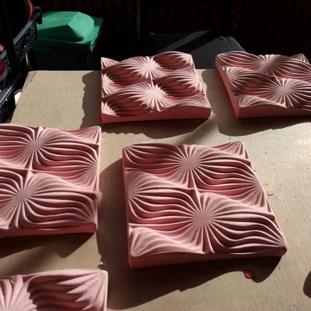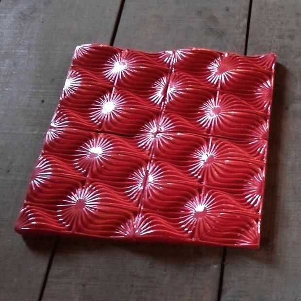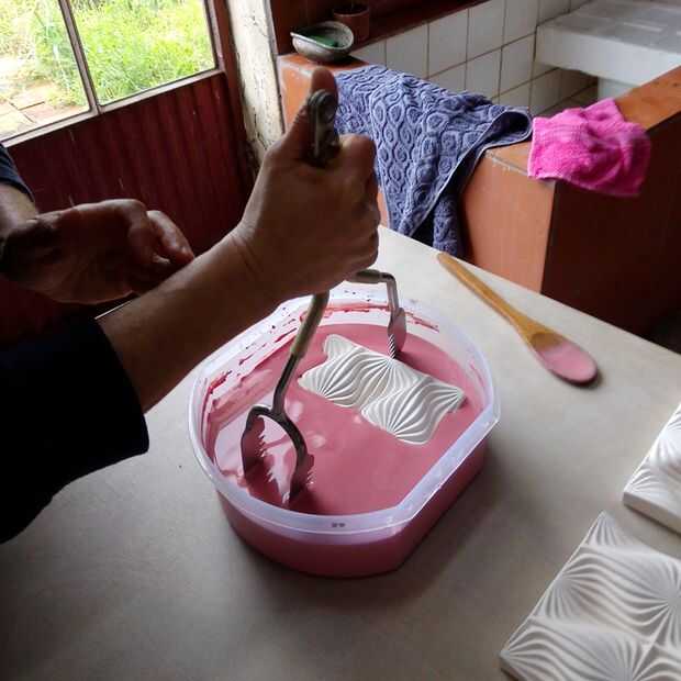 Cristal representa el impermeable de arcilla de gres, sellando la porosidad inherente y dándole color. El primer paso consiste en prudente sumergir los azulejos en un recipiente que contiene un color de esmalte líquido. La capa de esmalte debe ser fina y uniformemente distribuidas, teniendo cuidado de limpiar perfectamente parte inferior de la pieza para que no se fusionan con las paredes del horno al alcanzar la temperatura de vitrificación de 1050° C.