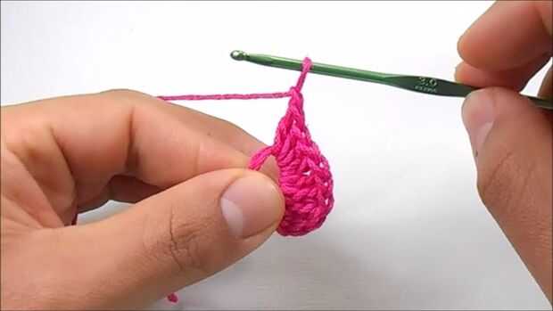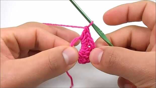 Para terminar la primera mitad, obra un Doble ganchillo y cadeneta.