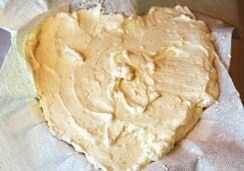 3. decantar la mezcla de queso crema en el molde papel forrado de toalla en forma de corazón. Dobla la toalla de papel sobrante en la parte superior y ajustar el molde dentro de un cuenco poco profundo para atrapar el líquido que se drene hacia fuera. Enfriar en la nevera durante la noche.