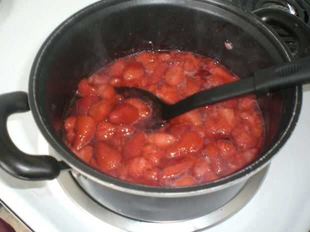 4. para hacer la salsa, poner las fresas, agua, jugo de limón y azúcar en una cacerola a fuego alto y cocinar a fuego lento durante 10 minutos, hasta que se disuelva el azúcar y las fresas son suaves. Enfriar la salsa en la nevera.
