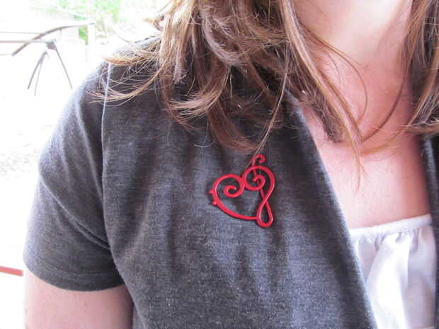 para todos los amantes de la música hacia fuera allí! Con unas pocas pulgadas de alambre y algunas herramientas básicas puede hacer un corazón con una clave de sol y clave de FA. Éste particular se adhiere a su camisa con un imán de neodimio por detrás.  Si sólo ese flautista lindo de la escuela secundaria podría verme ahora!