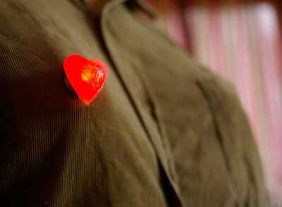 Ahora sujete el imán más grande dentro de su camisa y poner el corazón, con el pequeño imán unido a él, en el exterior. Ahora debe permanecer puesto. Para desactivarlo, sólo tire de la brocha fuera el pequeño imán.