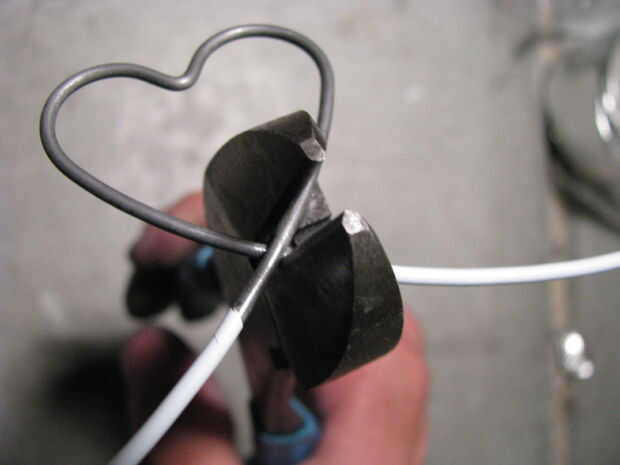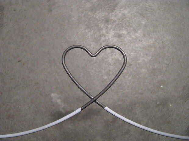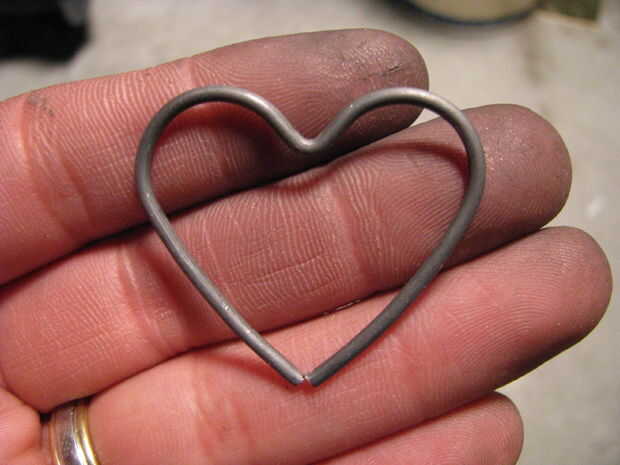 Juega con la forma hasta su feliz con él. Cortan los extremos libres del alambre desde el corazón.