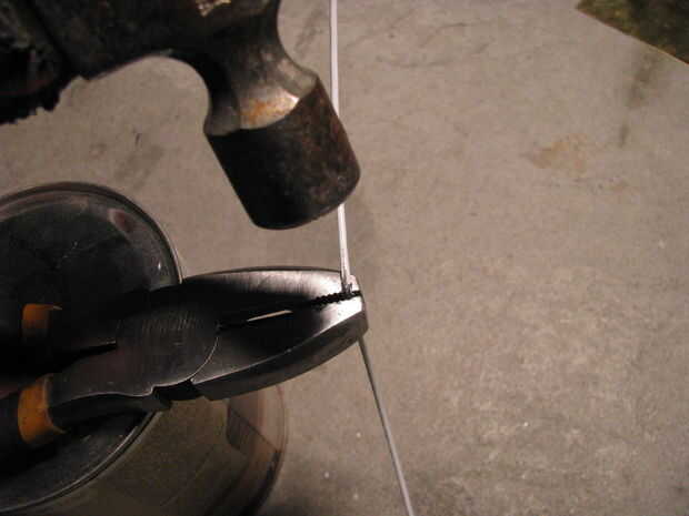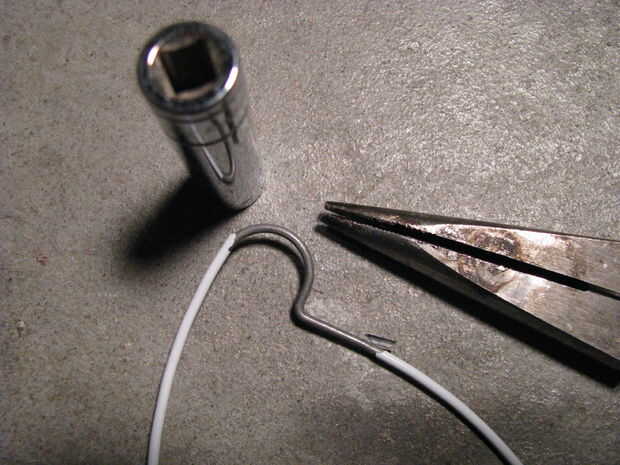 Luego hacer un grado 90 de la curva en el cable. Martillo el alambre en los alicates para afilar la curva. Utilice una broca de zócalo y forman los lóbulos del corazón. El tamaño exacto que estoy usando no es importante. Hacer que el corazón sea cual sea el tamaño que desee para las herramientas tiene.