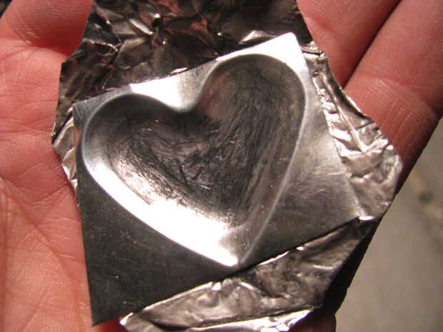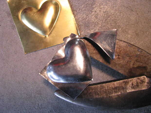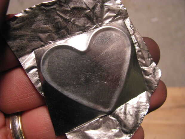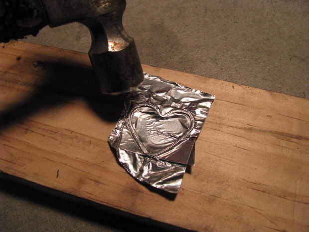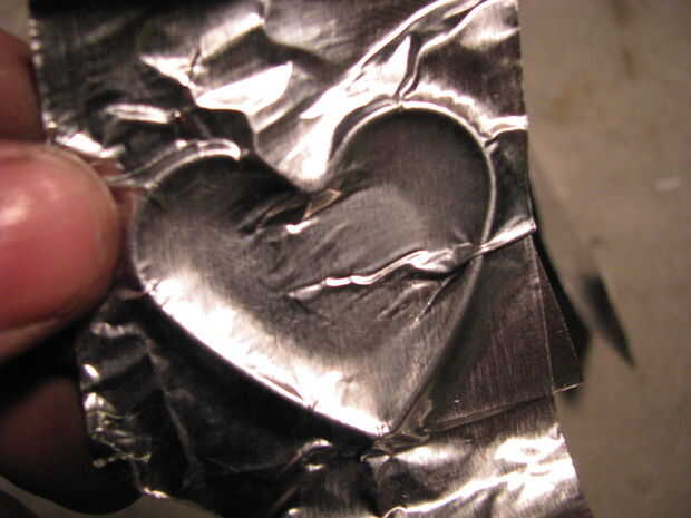 Use tijeras fuertes para recortar los corazones. Un corazón se cortará a la medida mientras que el otro se deja sólo un poco más grande. Esto le ayudará durante la soldadura.