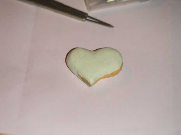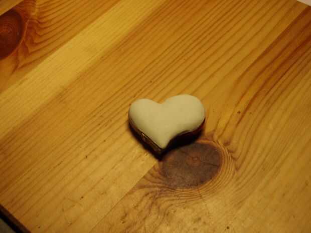 Instale la placa de plástico de forma de corazón y luego rellenar con masilla epoxi. Forma el corazón.